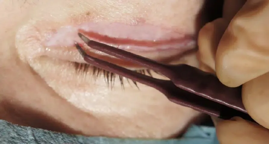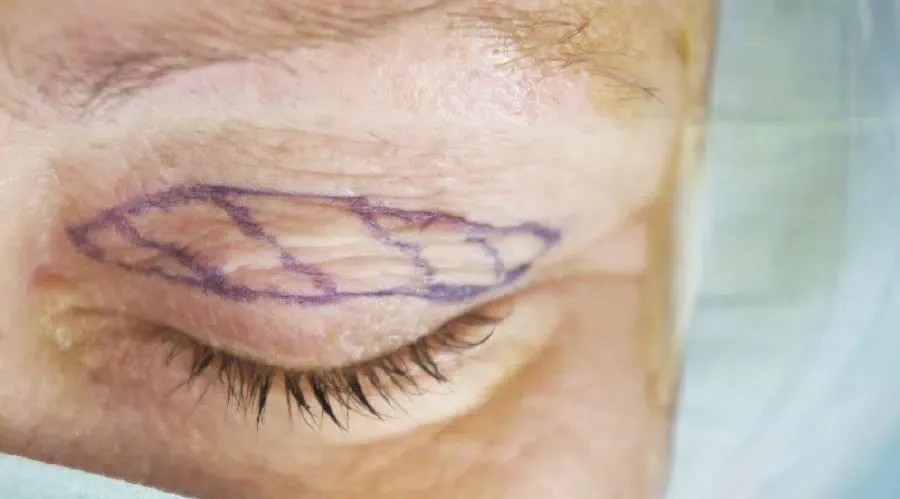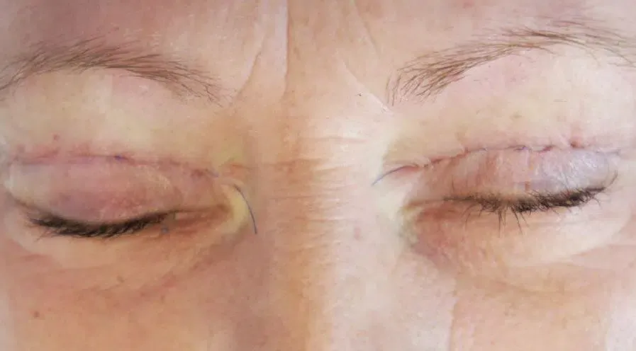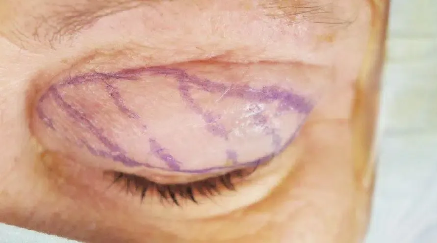 Bilder vom Ablauf einer Augenlid Operation.