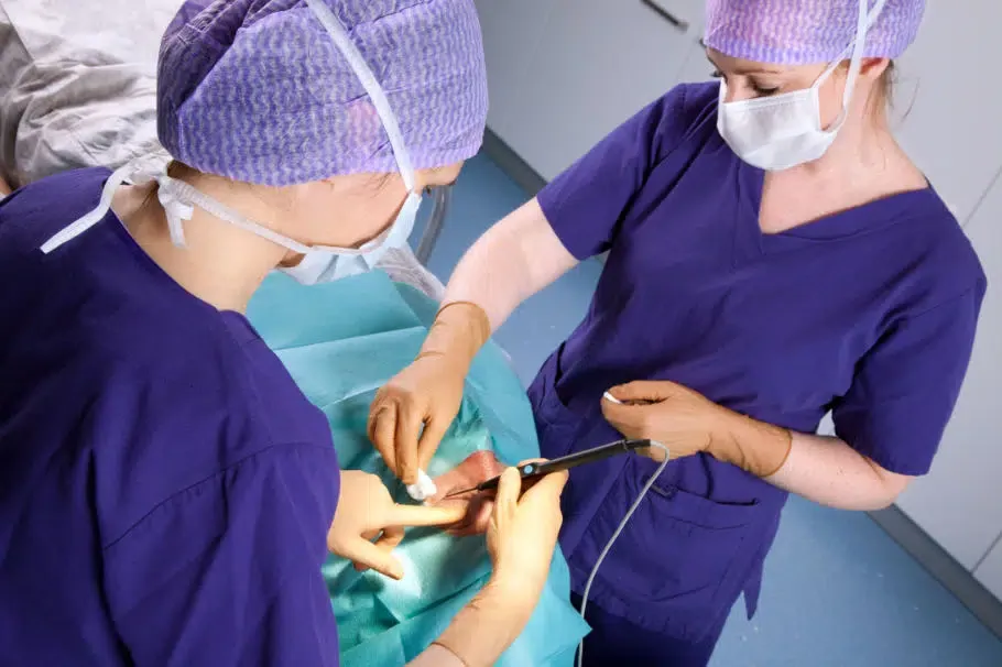 Vorher die Joddesinfektion und nachher zum Schutz der Naht mit Streifenpflaster.